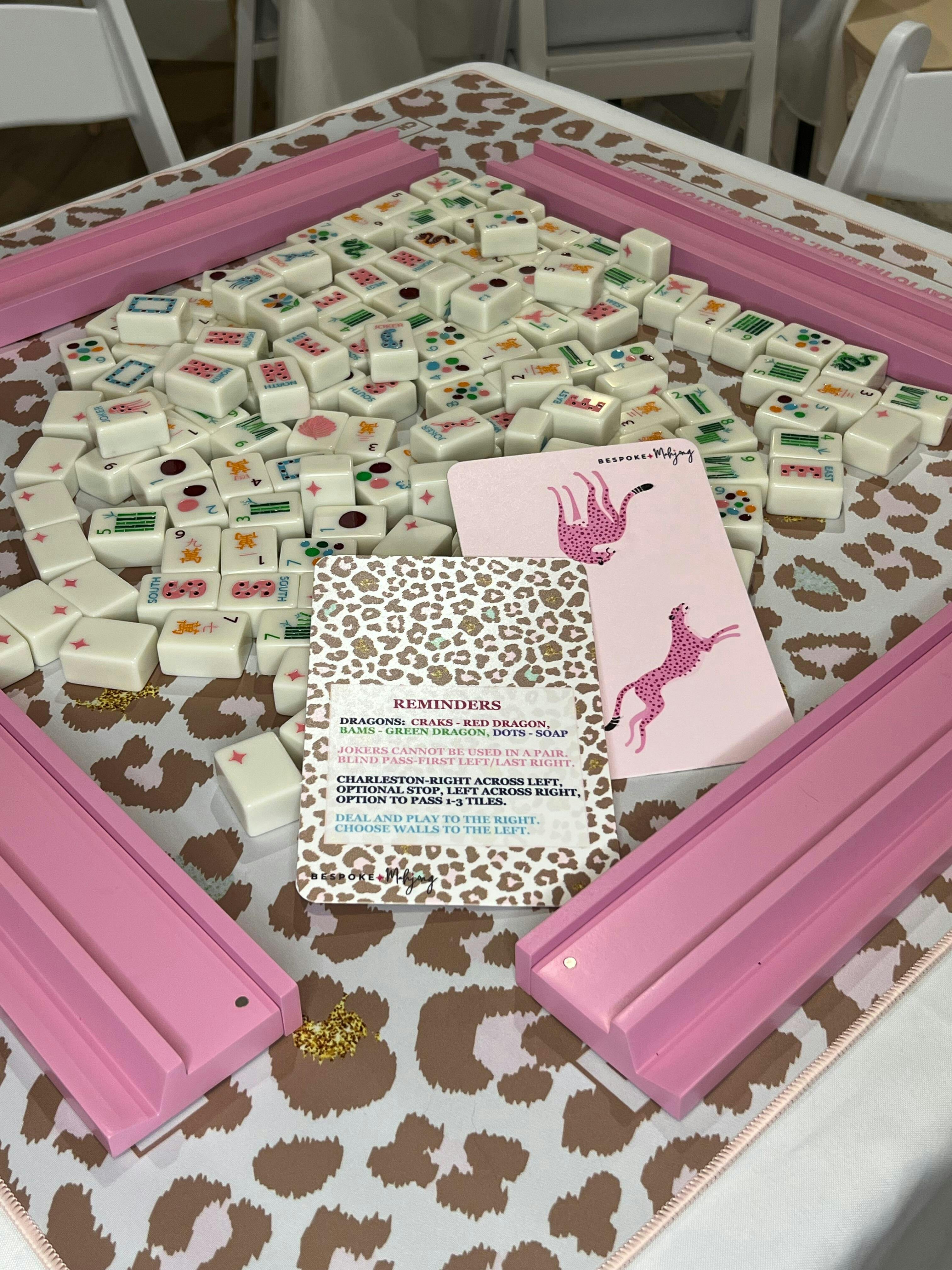 I feel like Iโm on vacation every time I sit at the table to play Mahjong. It is really so beautiful and it looks great with the pink safari tiles !
