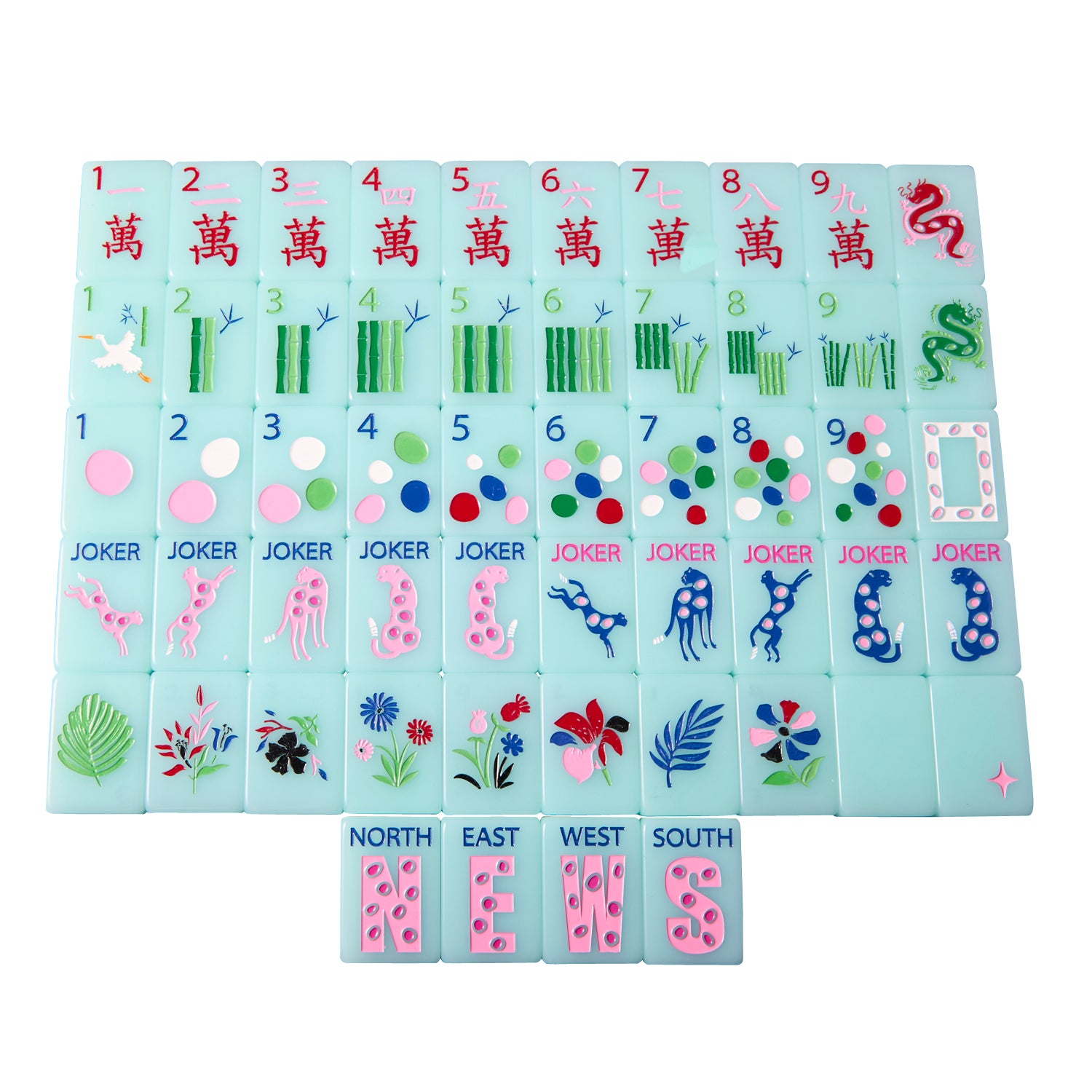 Introducing the Bespoke Springtime Safari Traditional Tiles. We've embraced the tradition of mahjong tiles and added a pop of color and fun.