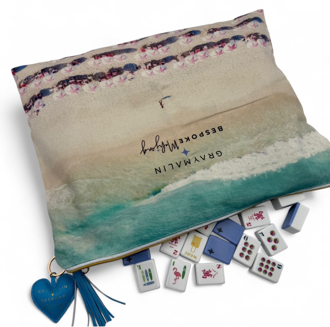 Pack your bags (but really, just grab your tiles) - we're bringing vacation vibes straight to the game table. The Gray Malin X Bespoke Beach Club Collection seamlessly blends Gray Malin's iconic aerial photography with Bespoke Mahjong's chic reimagining of the classic game.