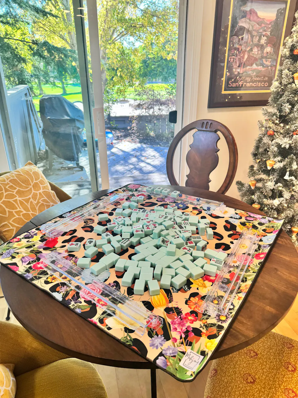 Seeing my grandma's reaction when she first laid eyes on her Mother's Day mat is something I will never forget. She hugged it close and told me she loved it more than she ever imagined. The intricate details are jaw-dropping and she cannot wait to play on it at her next game. It's gorgeous!!! She's 90 years young and never heard of playing on a Mat so I was a bit nervous gifting her a more modern Mahjong accessory. She squealed at first site and has called me every day since to tell me that she cannot wait for her white tiles to hit the black top of the midnight floral side. When she's not playing, she plans to leave the mat out on her bridge table, with the Leopard Garden side face up. It will look marvelous on top of her leopard table cloth. Thank you Bespoke Mahjong for making her day (and mine).