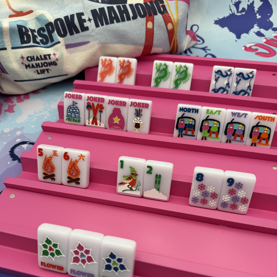 This isn’t your basic holiday set—it’s a bold, cozy celebration of winter that brings serious personality to the table. With its punchy colors, cheeky details, and mountain-lodge vibe, The Chalet Set is sure to be the tile set of the season. From festive flower tiles to ski-lift winds and that extra sparkle tile, every piece is designed to bring warmth, fun, and flair to your Mahjong nights. Whether you're playing fireside or just dreaming of the slopes, this set is winter magic in tile form. Bam, Bird, Cheers to good times Apres Ski and The Chalet Set!