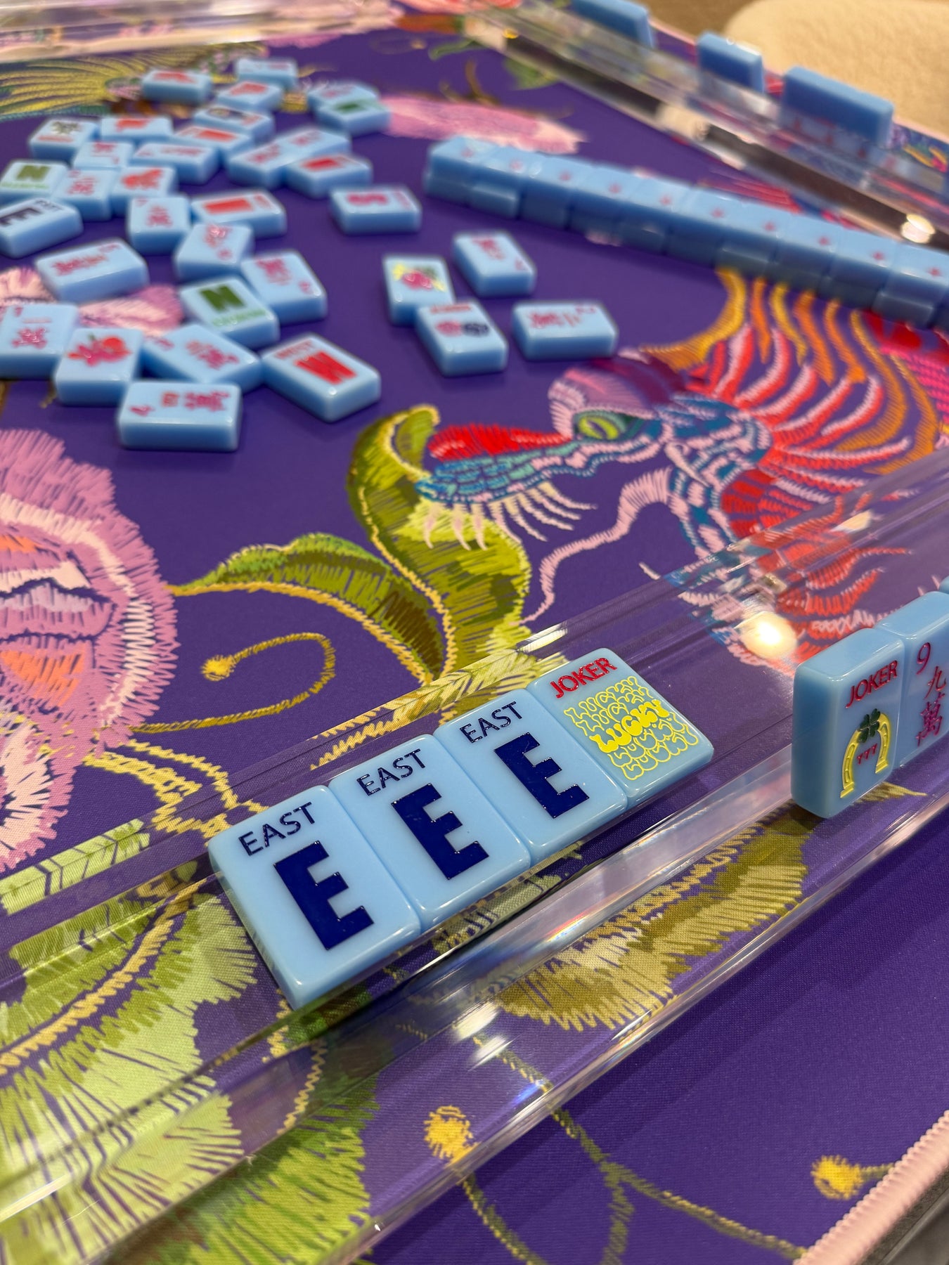 This versatile mahjong rack is thoughtfully designed to accommodate every size tile, from traditional to our XL Mega tiles, making it the ultimate gaming companion. Features a 20" length and a tile exposure depth of 1.57", with a sleek ¾" edge for comfortable play.