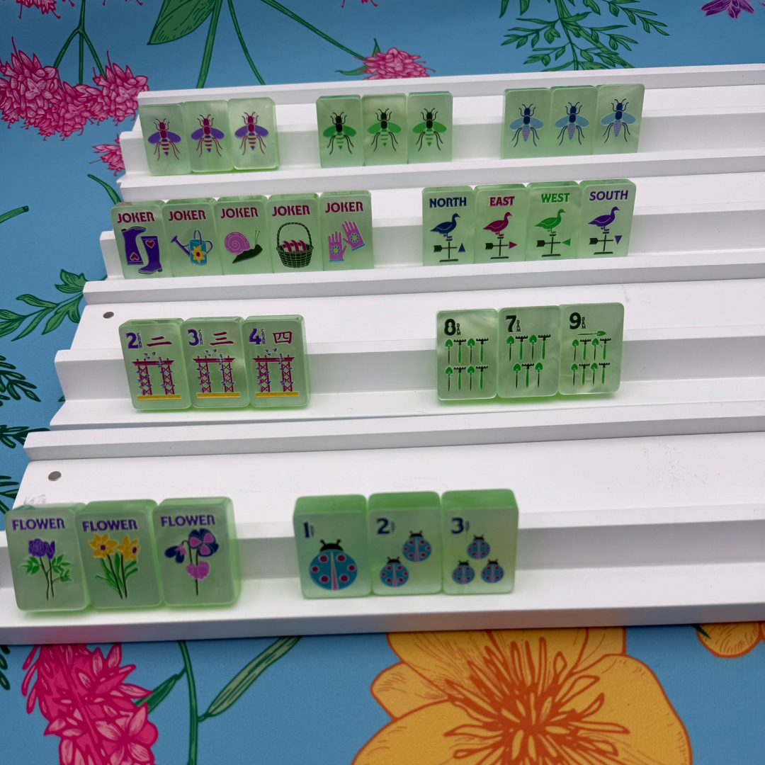 Garden Glow pearl tiles in Matcha Pearl color brings your mahjong table to life with soft pearl green tiles, cheerful florals, and whimsical garden details. Fresh, playful, and a little magical, this set turns every game night into a glowing garden party.