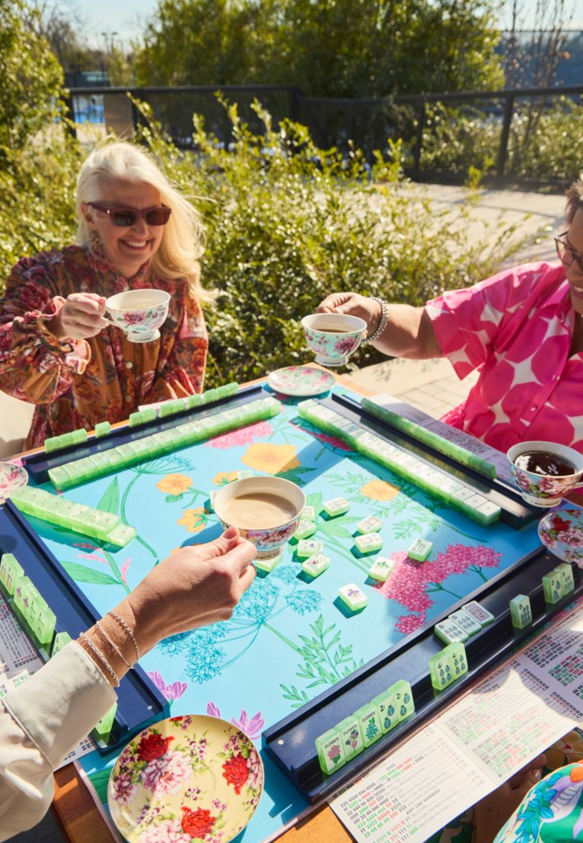 Elevate your gaming experience with The Garden Glow Kit in MATCHA PEARL tiles. This bundle of goodies includes tiles, racks, game mat, tile bag, dice, and Patch Perfect Sling Bag for your mat. Sure to make a perfect gift for any mahjong player!