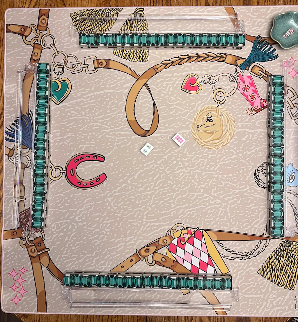 Both sides of the mat feature lucky charms for a lucky 2026. The double sided Pleated version has adorable chanel-like black pleated background on one side and creamy leather-like pattern on the other side. 2 Year of the Horse mats in 1!