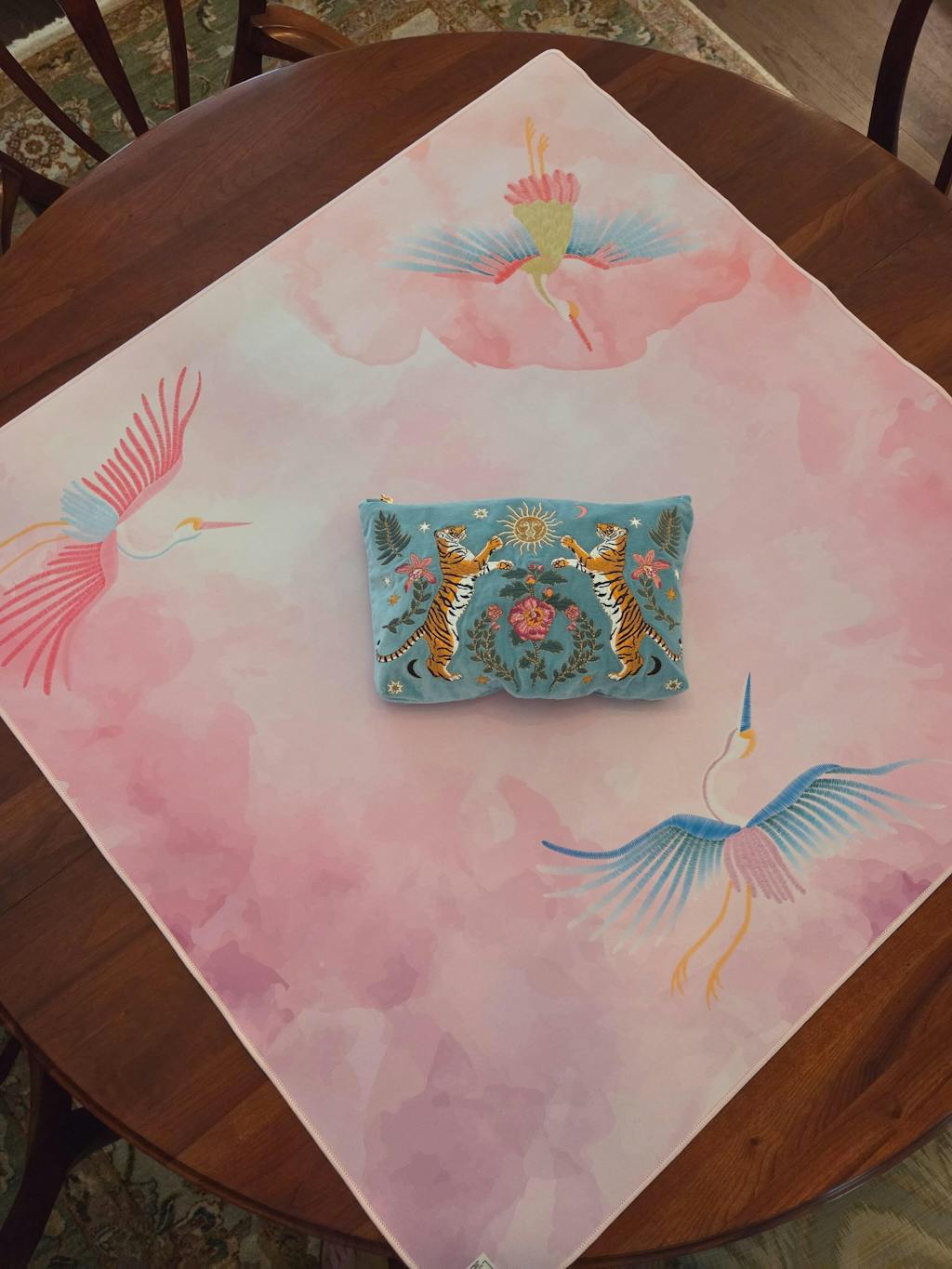 Take your Mahjong game to new heights with Cranes and Clouds — our dreamy, double-sided mat featuring graceful cranes in flight.