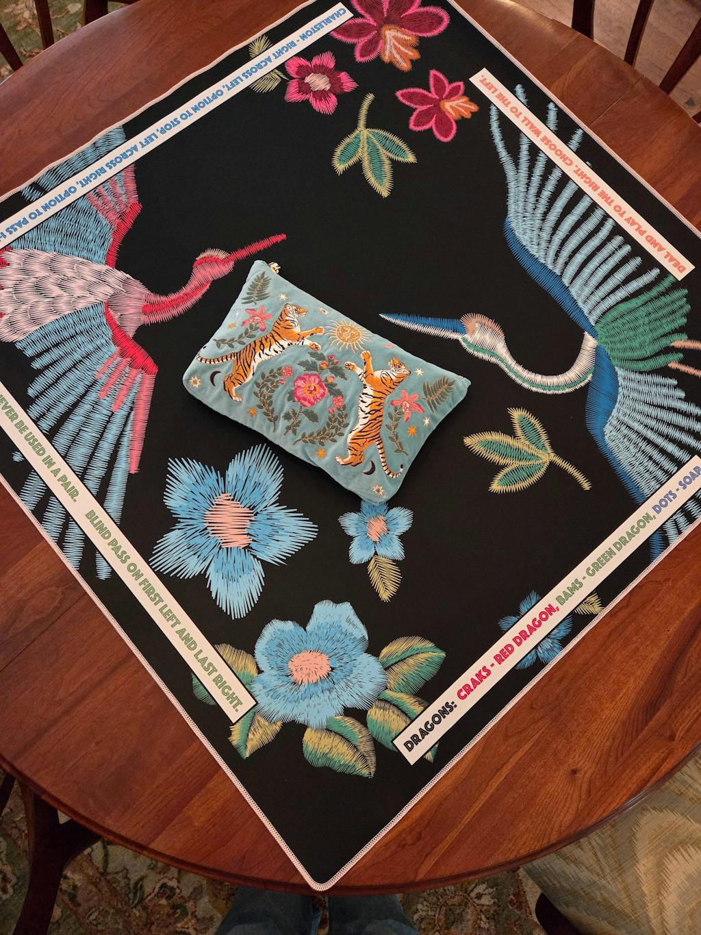 I am so pleased with my new mat. I thought I owned some beautiful mats, but this one is by far the most stunning mat I own! Both sides work so well with my beautiful tiles and allow me to change up my sets.